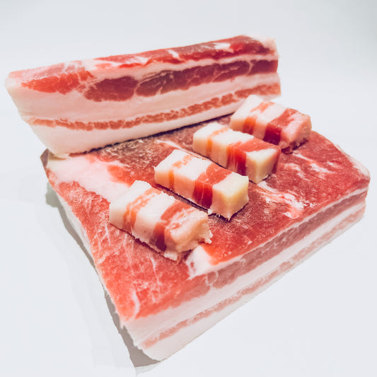 Stykningsdeler og kjøttpakker – fryst kjøtt av nøttefôret frilandsgris.